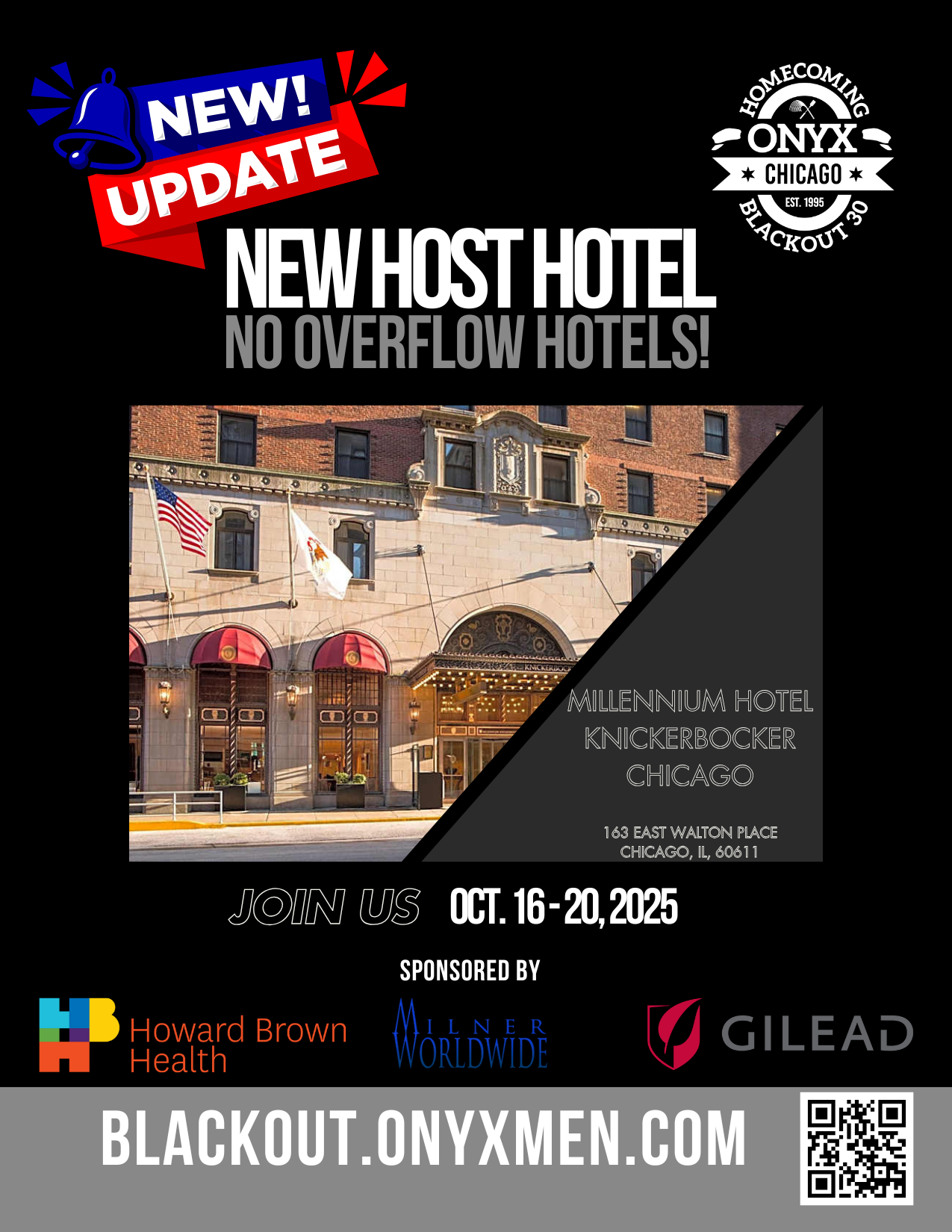 BLACKOUT, the Men of ONYX’s bi-annual leather run, is coming home to Chicago to celebrate its 30th anniversary from Oct. 16 – 20, 2025. The BLACKOUT 30 Committee is excited to welcome everyone as we celebrate this momentous occasion. Buy your weekend package by clicking: BLACKOUT Registration